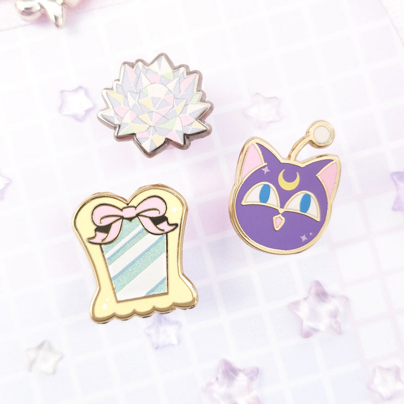 - Gold-toned hard enamel pin (Crystal is Silver)